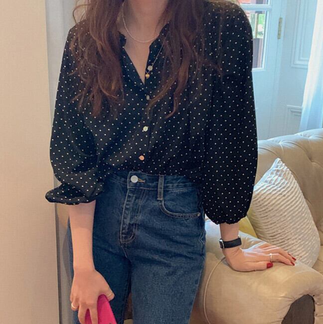 この「シャツ ブラウス 長袖ブラウス トップス レディース 人気シャツ ランタンスリープ ドット柄 気質 おしゃれ」を着て、春夏のおしゃれを楽しんでください!