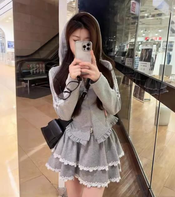 p-2024春秋新作 ボトムス 女 レディース ハイウエスト ミニスカート 台型スカート セット